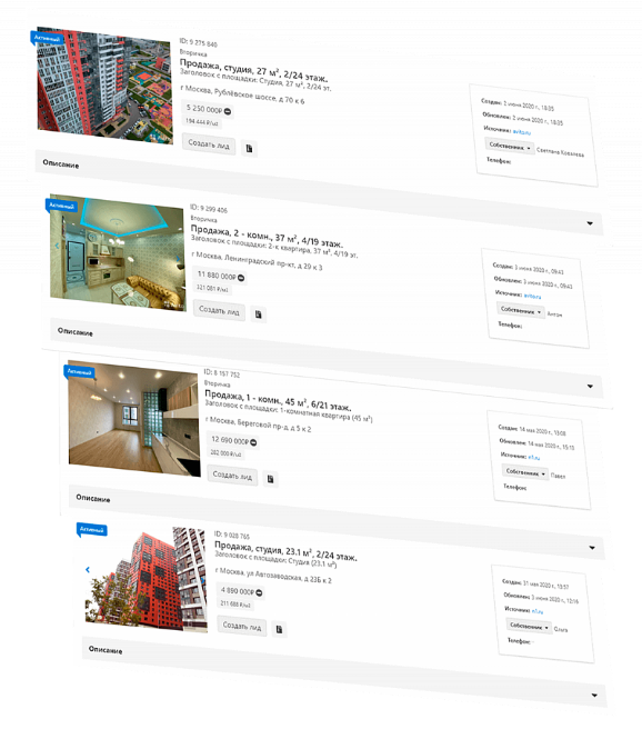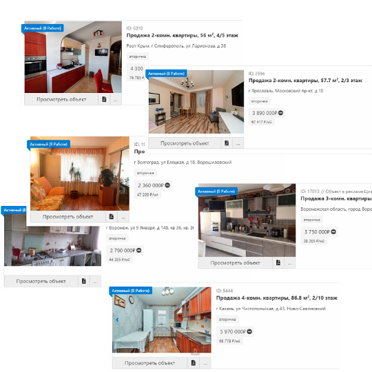 - Просматривайте объекты своих коллег для совершения совместных сделок.